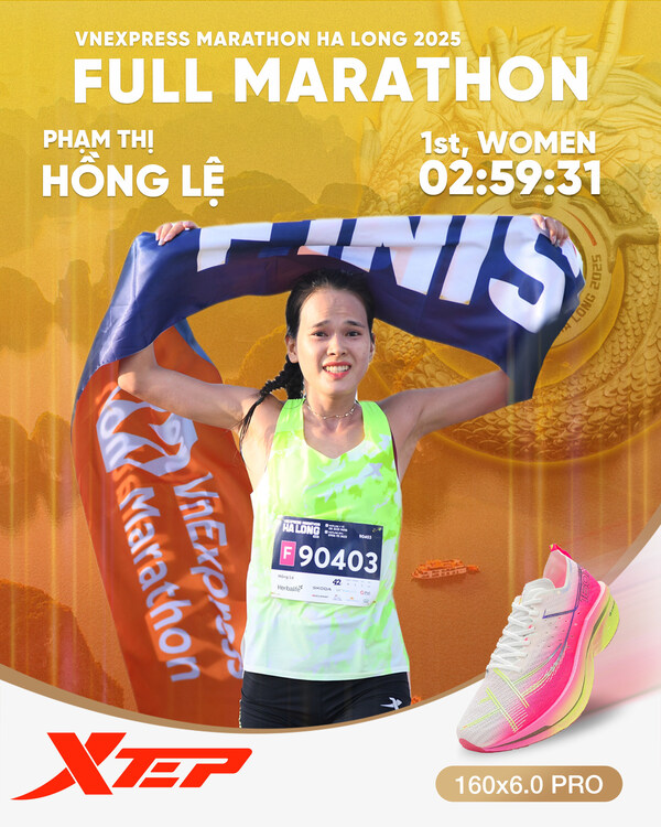 HA LONG, Vietnam, 3 Jun 2025 /PRNewswire/ -- Jenama pakaian sukan profesional XTEP menaja pelari terunggul Phạm Thị Hồng Lệ dalam VnExpress Marathon Ha Long 2025 pada 1 Jun yang memenangi pertandingan ini dengan catatan masa 02:59:31. Acara ini, yang menarik minat beribu-ribu pelari elit, turut menyaksikan pelari-pelari tajaan XTEP berjaya mendapatkan kedudukan podium dalam acara separuh maraton: Đào Minh Chí mendapat tempat ketiga dalam kategori lelaki (01:13:23), manakala Hán Thị Bích Thư mendapat tempat ketiga dalam kategori wanita (01:31:17). Pencapaian ini secara kolektifnya menonjolkan kelebihan prestasi yang diberikan oleh peralatan sukan daripada XTEP.