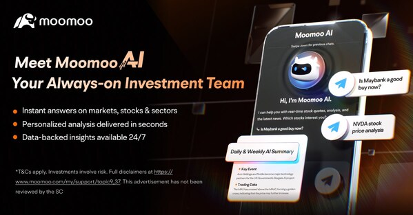 KUALA LUMPUR, Malaysia dan SINGAPURA, 13 Jun 2025 /PRNewswire/ -- Hari ini, Moomoo mengumumkan pelancaran Moomoo AI, iaitu suit alatan pelaburan dikuasakan AI komprehensif yang kini beroperasi pada platformnya di Malaysia dan Singapura.