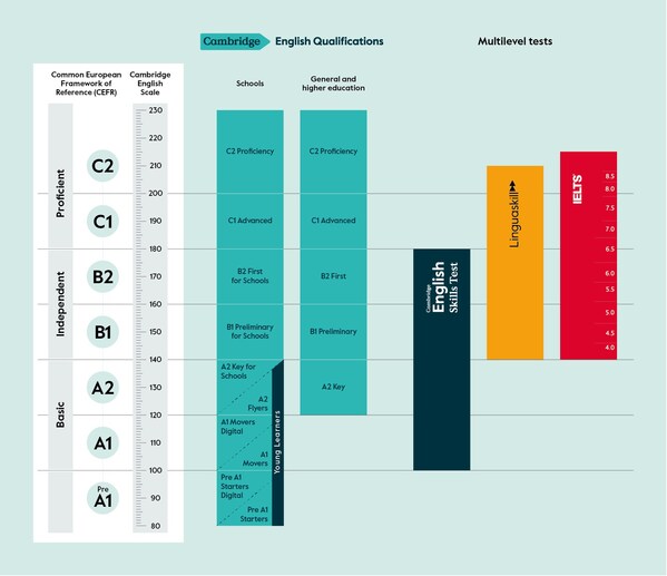 Cambridge English menawarkan kelayakan yang disesuaikan mengikut tahap pembelajaran yang berbeza: