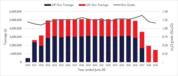 - Spodumene concentrate production spanning ~20 years and a nominal steady-state production rate of up to ~800,000 tpa SC5.5 spodumene concentrate upon achieving full production capacity; and